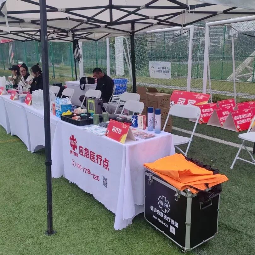 主办方筹备时便精准对接,团队迅速定制方案:备足跌打损伤药膏、冰敷喷雾等专用物资,按赛程分时段值守,实现保障无空档。