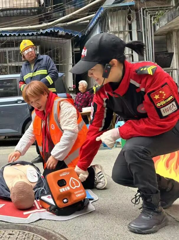 实操演练环节,导师现场示范规范动作,引导居民亲身参与,手把手纠正操作细节,让大家在实践中巩固技能,切实提升应急反应能力。