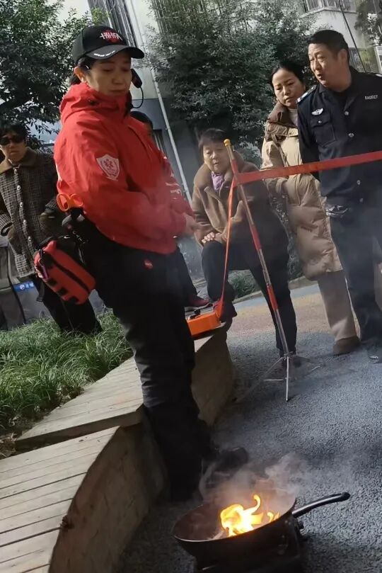 携手急救团队带着灭火毯、锅盖等工具,把厨房 “搬” 到了社区广场:从 “别用水浇” 的关键提醒,到 “盖锅盖断氧” 的实操演示,再到灭火毯的正确展开手法,把 “一秒避险” 的技能教给每一位居民。