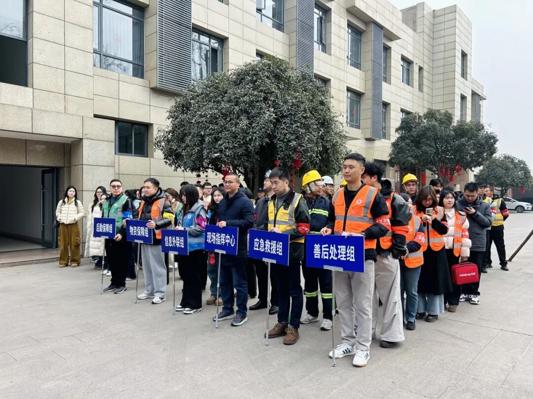 模拟二楼接待室火情警报拉响后,现场指挥组,应急救援组,善后处理组,信息外联组,物资保障组,后勤保障组疏散六支小组闻令而动、迅速响应,按照升级后演练预案各司其职,即刻进入应急处置状态,展现出高效的快速集结能力。